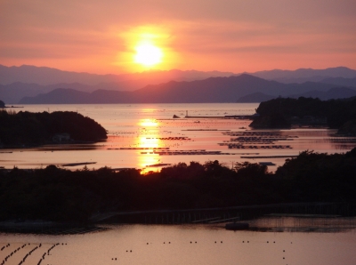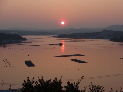 「桐垣展望台」からは英虞湾のリアス式海岸や真珠の養殖イカダが見渡せる。英虞湾は「日本の夕陽100選」に選ばれており、春分秋分の頃は湾の正面に夕陽が沈むことから多くのカメラマンが訪れる。立神・西山慕情が丘