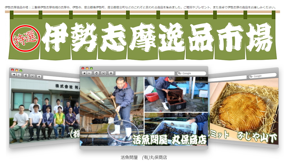 伊勢志摩逸品市場。三重県伊勢志摩地域の志摩市、伊勢市、度会郡南伊勢町、度会郡度会町などのこれぞと言われる逸品を集めました。ご贈答やプレゼント、また食卓で伊勢志摩の逸品をお楽しみください。